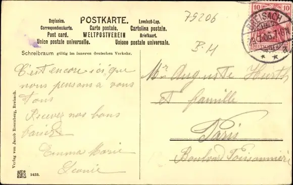 Zustand, siehe Scan, gelaufen, 1906 - ca 14 cm X 9 cm