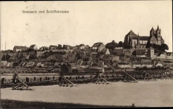 Ak Breisach am Oberrhein, Ortsansicht mit Schiffsbrücke, Kirche