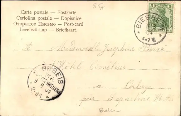 Zustand, siehe Scan, gelaufen, 1904 - ca 14 cm X 9 cm