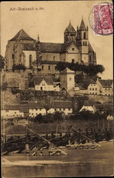 Ak Breisach am Oberrhein, Teilansicht, Kirche, Anleger