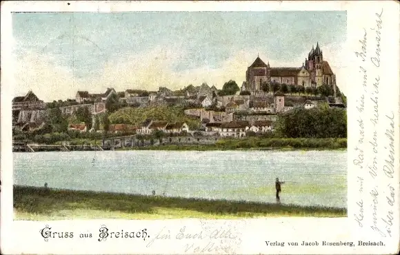 Ak Breisach am Oberrhein, Totalansicht, Rhein, Kirche