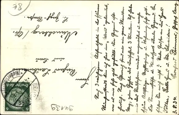 Zustand, siehe Scan, gelaufen, 1934 - ca 14 cm X 9 cm