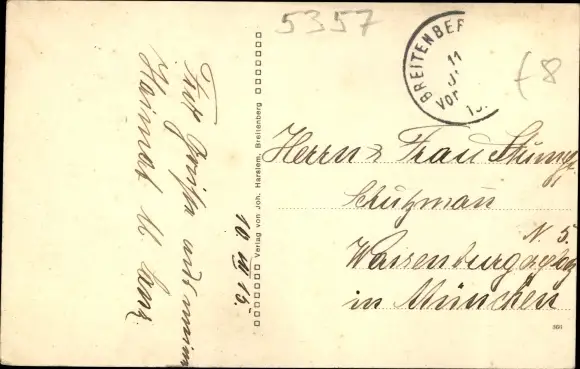 Zustand, siehe Scan, gelaufen, 1915 - ca 14 cm X 9 cm