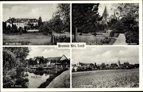 Ak Bremen Ense im Sauerland, St. Josefs Haus, Im Garten, Totalansicht, Spring