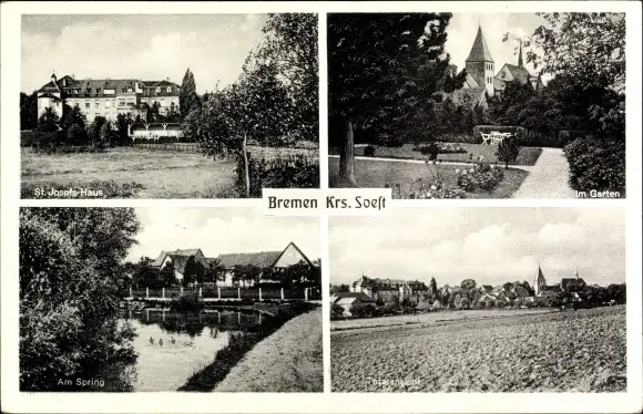 Ak Bremen Ense im Sauerland, St. Josephs Haus, Im Garten, Totalansicht, Spring