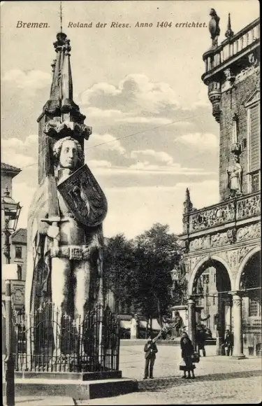 Ak Bremen, Roland der Riese, Anno 1404 errichtet