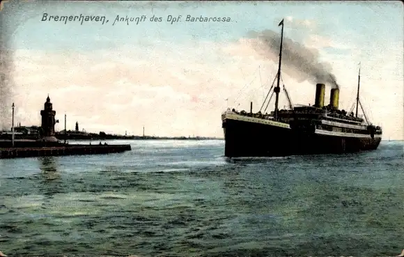 Ak Bremerhaven, Ankunft des Dampfers Barbarossa