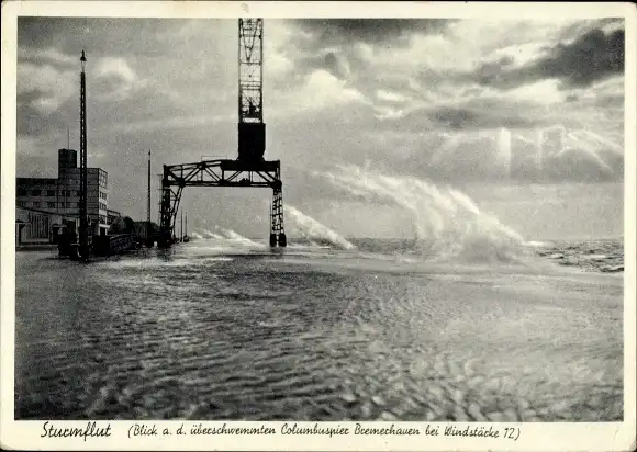 Ak Bremerhaven, Columbuspier bei Sturmflut