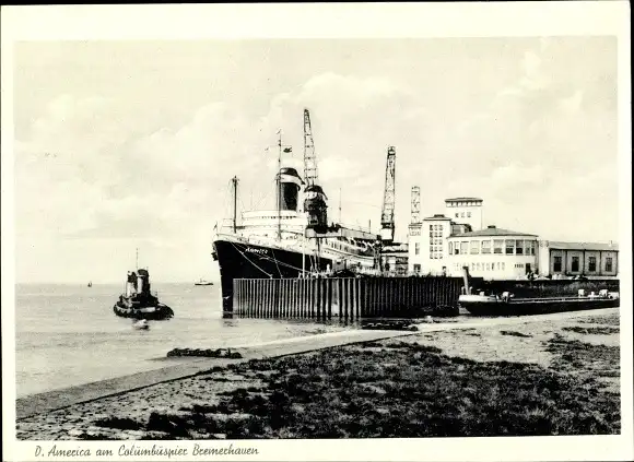 Ak Bremerhaven, Dampfschiff America am Kolumbuspier, HAPAG