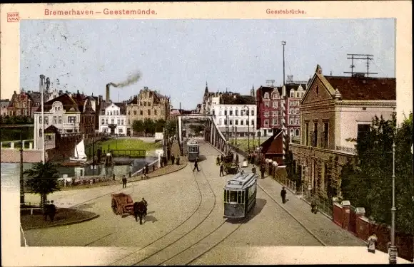Ak Bremerhaven Geestemünde, Geestebrücke, Straßenbahn