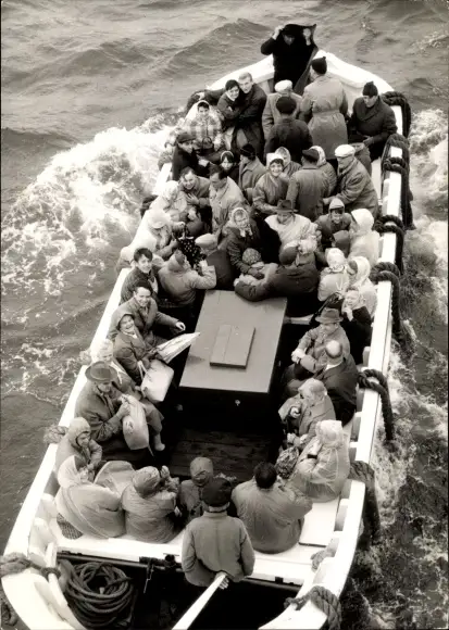 Ak Bremerhaven, MS Bremerhaven, Tenderboot, Passagiere