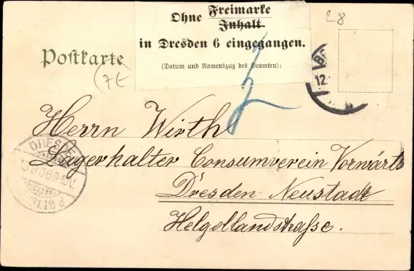 Zustand, siehe Scan, gelaufen, 1906 - ca 14 cm X 9 cm