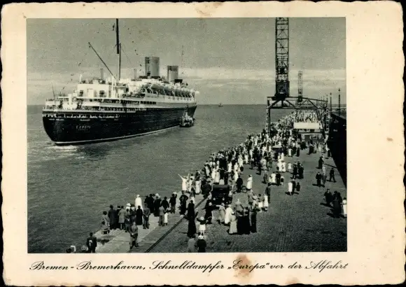Ak Bremerhaven, Schnelldampfer "Europa" vor der Abfahrt