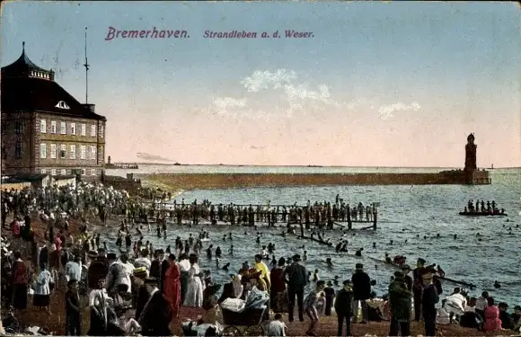Ak Bremerhaven, Strandleben an der Weser, Leuchtturm