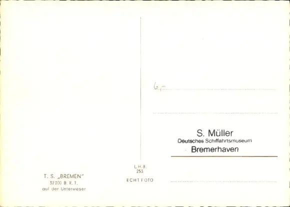 Ak Bremerhaven, T. S. Bremen auf der Unterweser