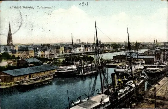 Ak Bremerhaven, Totalansicht, Hafen, Stadt