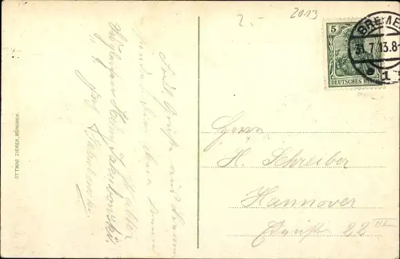 Zustand, siehe Scan, gelaufen, 1913 - ca 14 cm X 9 cm