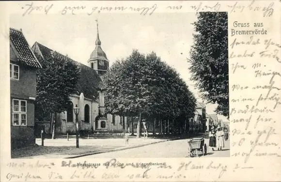 Ak Bremervörde Niedersachsen, Neue Straße, Kirche, Kriegerdenkmal