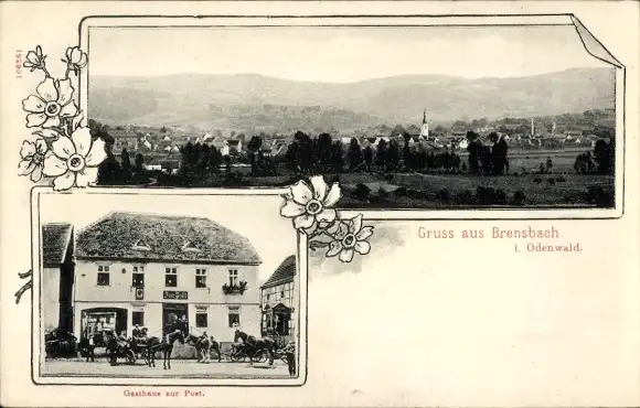 Ak Brensbach im Odenwald Hessen, Panorama, Gasthaus zur Post