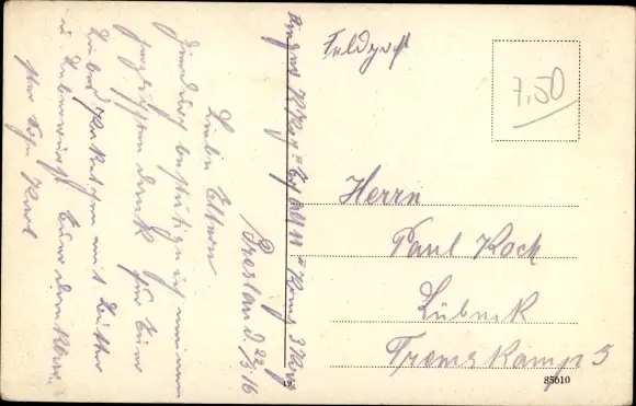ungelaufen, datiert 1916, Rückseite beschrieben, sehr guter Zustand
