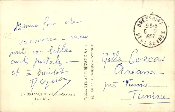 Zustand, siehe Scan, gelaufen, 1952 - ca 14 cm X 9 cm