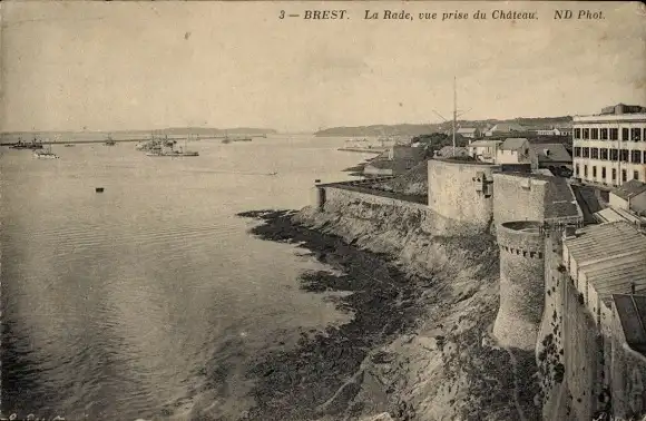 Ak Brest Finistère, La Rade, vue prise du Chateau