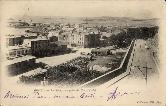 Ak Brest Finistère, La Rade, vue prise du Cours Dajot