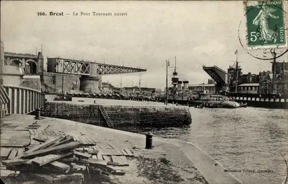 Ak Brest Finistère, Le Pont Tournant geöffnet