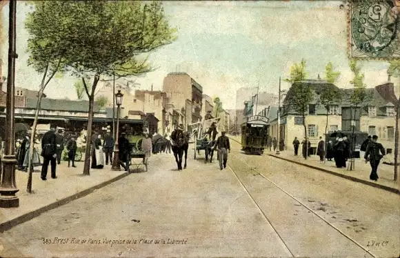 Ak Brest Finistère, Rue de Paris, Blick vom Place de la Liberte