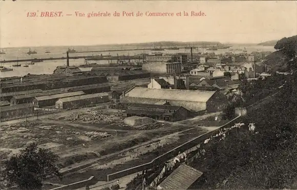 Ak Brest Finistère, Vue generale du Port de Commerce et la Rade