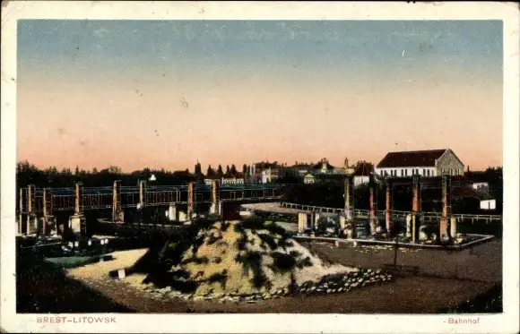 Ansichtskarte,Postkarte,Bahnhof,Bahnhöfe,Haltestelle,Hauptbahnhof,Station,Stadtbahnhof,Haltepunkt,Bahnstation,Brest,Litowsk,Litauisch, Bres,Брэст,Берасьце,Bjeraszje,Brześć, nad, Bugiem,Брест,Brestas,Lietuvos, Brasta