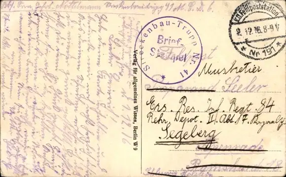 Zustand, siehe Scan, gelaufen, 1916 - ca 14 cm X 9 cm