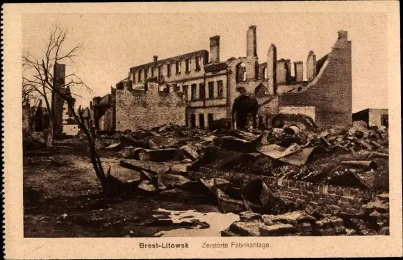 Ak Brest Litowsk Weißrussland, Zertörte Fabrikanlage