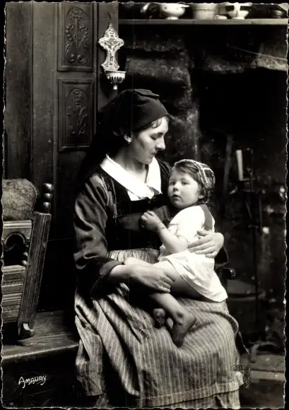 Ak Bretagne, Coiffe, Mutter mit Kind in bretonischer Tracht
