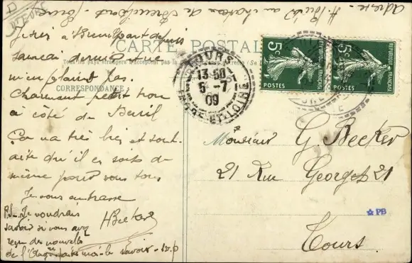 gelaufen 1909, Einriss, fleckig, sonst guter Zustand