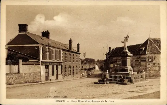 Ak Bréval Yvelines, Place Bihorel et Avenue de la Gare