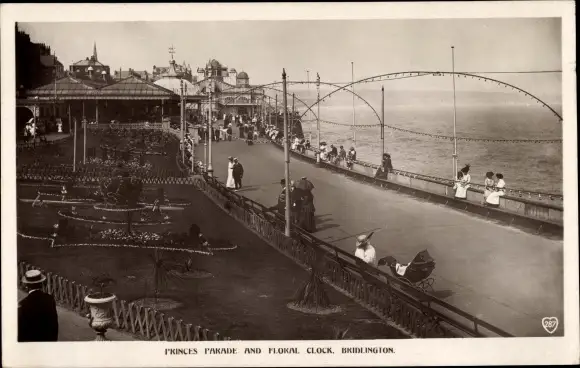 Ak Bridlington East Riding of Yorkshire, Princes Parade and Floral Clock