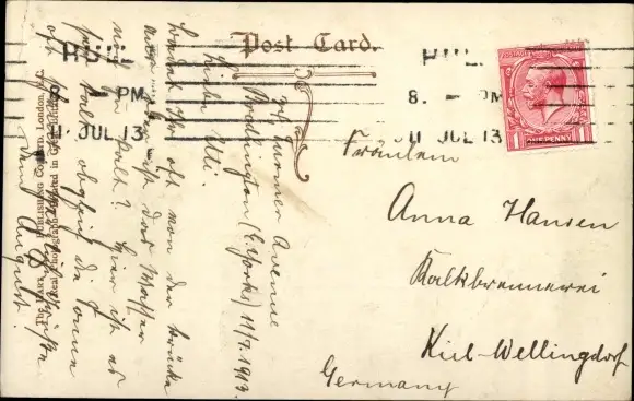 Zustand, siehe Scan, gelaufen, 1913 - ca 14 cm X 9 cm