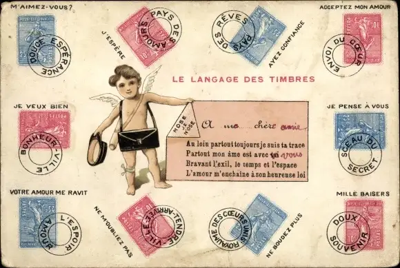 Ak Briefmarkensprache, Engel