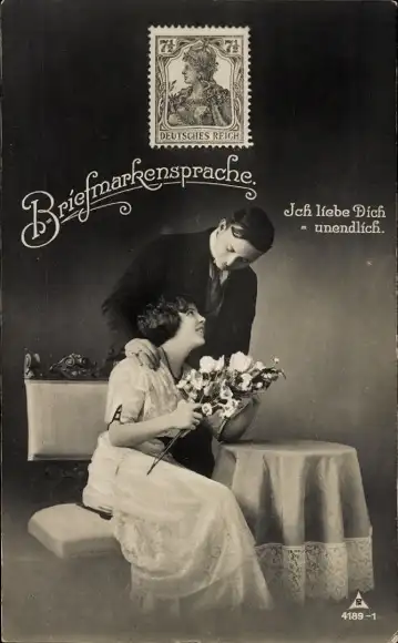 Ak Briefmarkensprache, Ich liebe Dich unendlich