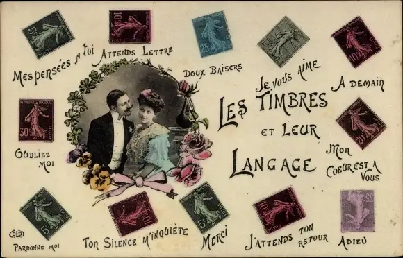 Ak Briefmarkensprache, Liebespaar