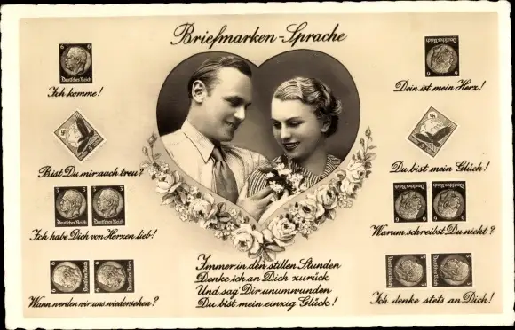 Ak Briefmarkensprache, Liebespaar, Du bist mein Glück