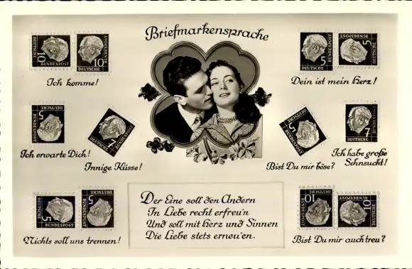 Ak Briefmarkensprache, Liebespaar, Glücksklee