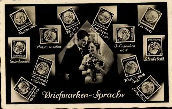 Ak Briefmarkensprache, Liebespaar, Komme bald, Ich liebe Dich