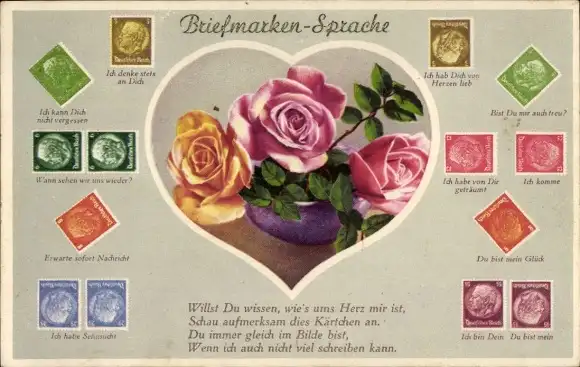 Ak Briefmarkensprache, Rosen, Kitsch