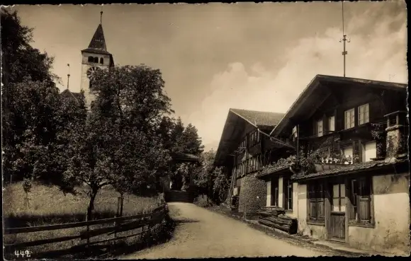 Ak Brienz Kanton Bern, Kirche und Bernerhäuser