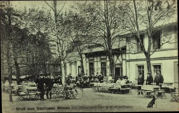 Ak Briese Birkenwerder im Kreis Oberhavel, Gasthaus Briese, Garten, Gäste