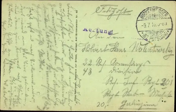 Zustand, siehe Scan, gelaufen, 1916 - ca 14 cm X 9 cm
