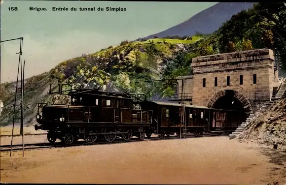 Ak Brig Brig Kt. Wallis Schweiz, Eingang zum Simplontunnel