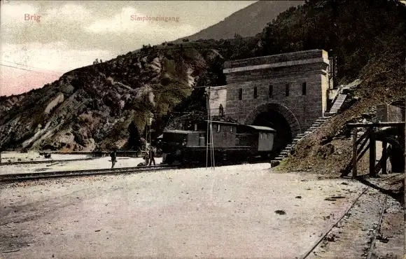 Ak Brigue Brig Glis Kanton Wallis, Tunnel du Simplon, Simplontunnel